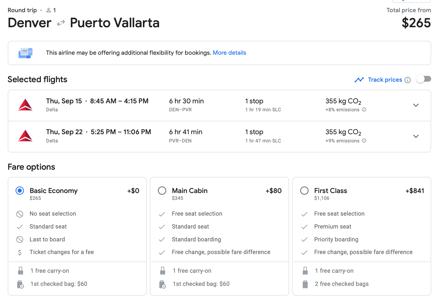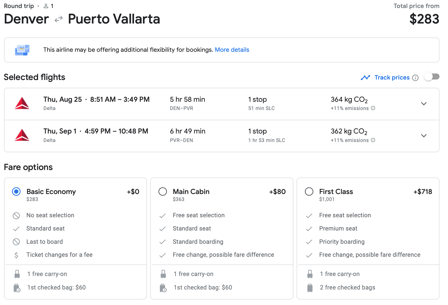 How does $283 round-trip sound for an end-of-summer trip? That's the price you can find for a Delta Basic Economy ticket from Denver International Airport (DEN) to Puerto Vallarta -- more than 50% off the normal price. You get a free carry-on but a checked bag will cost you $60.