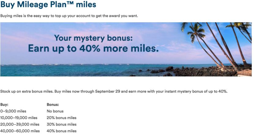 Following a massive devaluation for Emirates awards just a few months ago, Alaska miles aren't nearly as appealing as they once were, but you can still get some great deals. If you have a specific redemption in mind, you could get some decent value from the airline's latest promotion, which is offering up to a 50% bonus when you purchase miles through September 29, 2016.