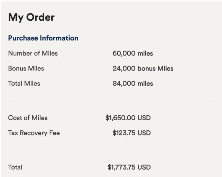 To max out the promo (assuming you're targeted for a 50% bonus), you'll need to purchase 60,000 miles for $1,773.75 (including tax). You'll receive a bonus of 30,000 miles, bringing your cost down to 1.97 cents per mile (compared to the usual cost of 2.96 cents each).