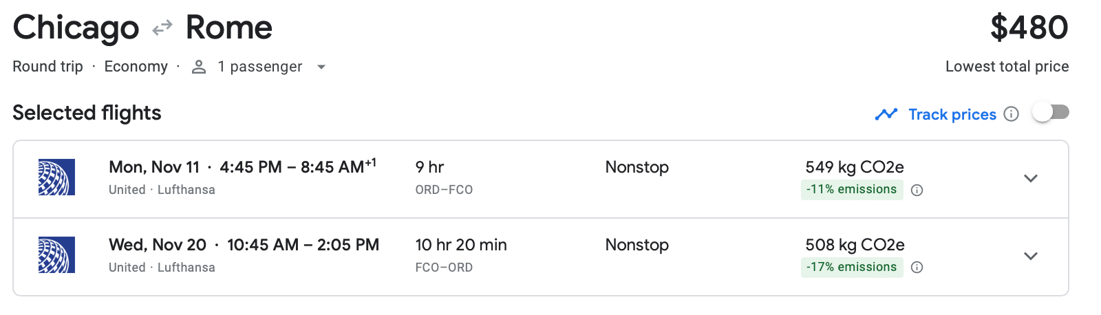 United has nonstop flights from Chicago's O'Hare International Airport (ORD) to Rome in early November for $480 — a superb deal for this route.
