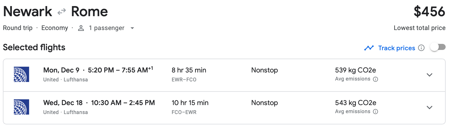 You can also fly United nonstop from Newark Liberty International Airport (EWR) to Italy's capital city in December for $456.