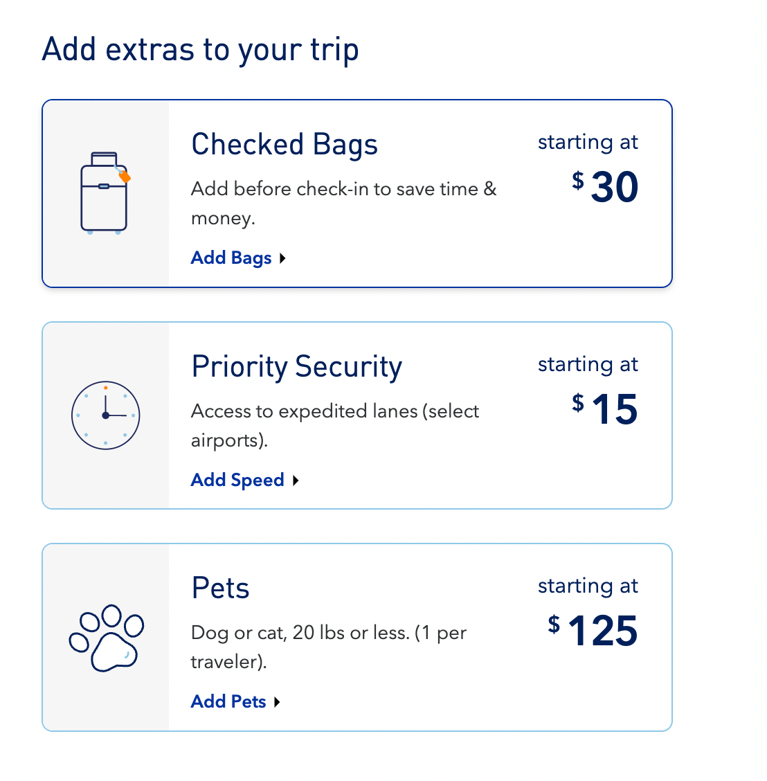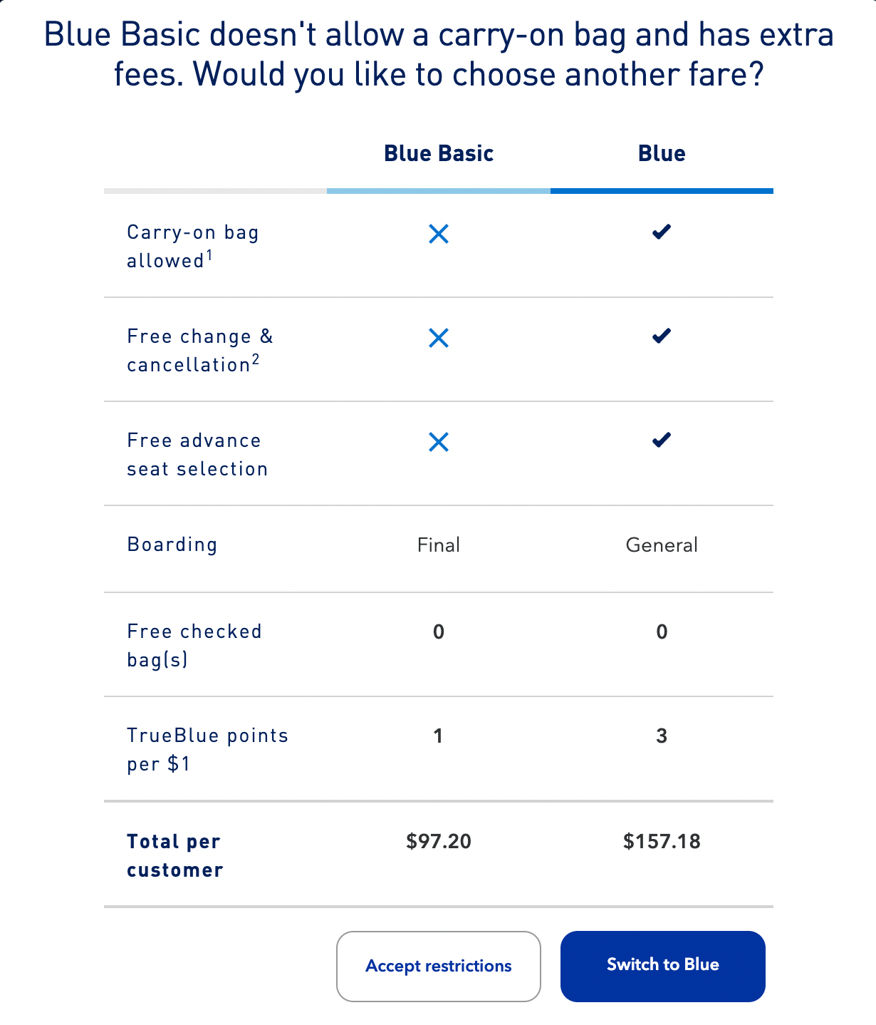 Since Blue Basic does not include checked baggage, you can pay an additional $30 to check your luggage one-way ($60 in total for a round-trip flight).