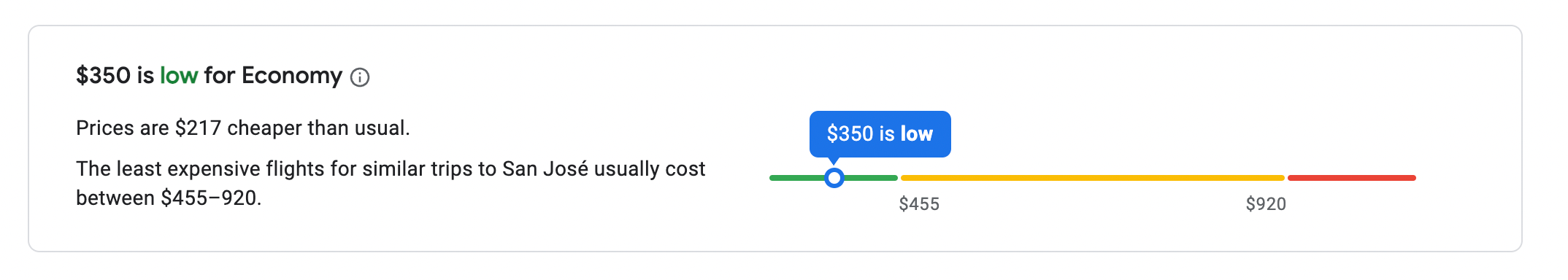 This $350 fare is definitely a steal, as the least expensive tickets to San Jose normally start at $455, according to Google Flights.