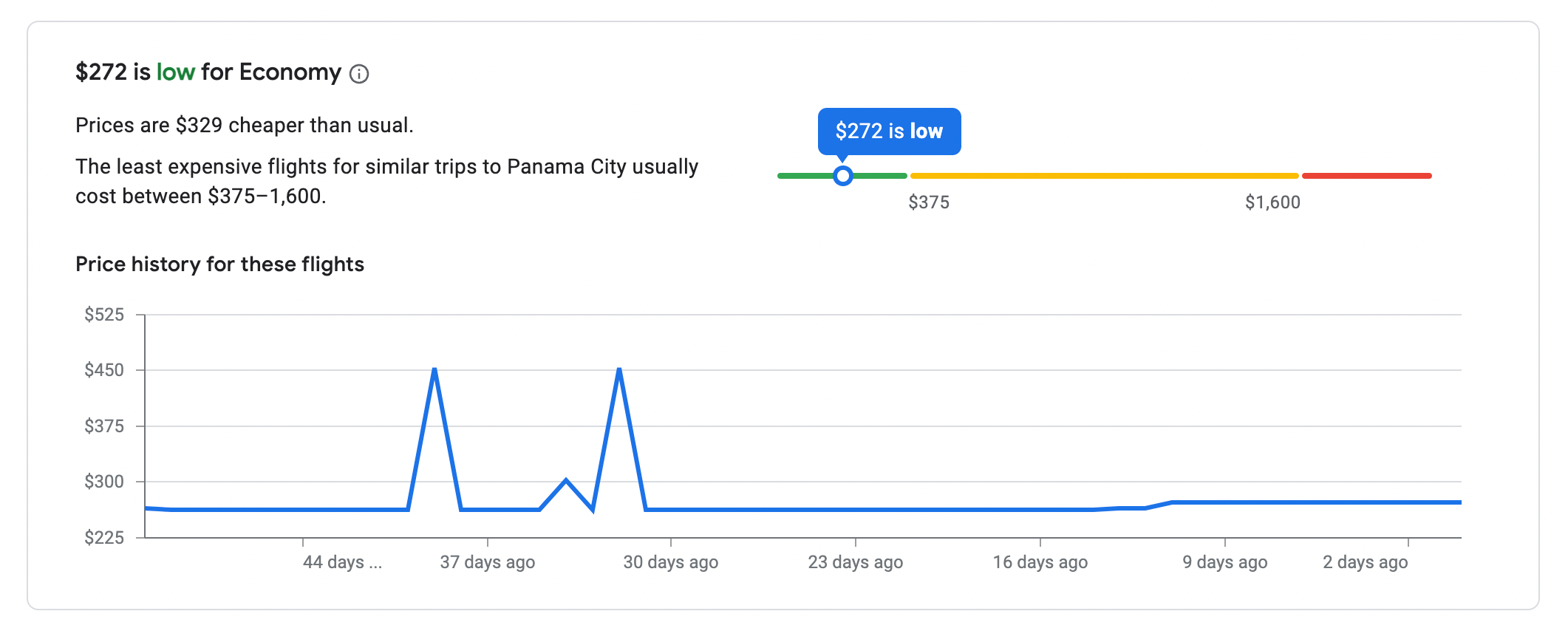 A $272 round-trip flight to Panama City from JFK is a rare price point. Flights to Panama City can cost anywhere between $375 and $1,600, according to Google Flights.