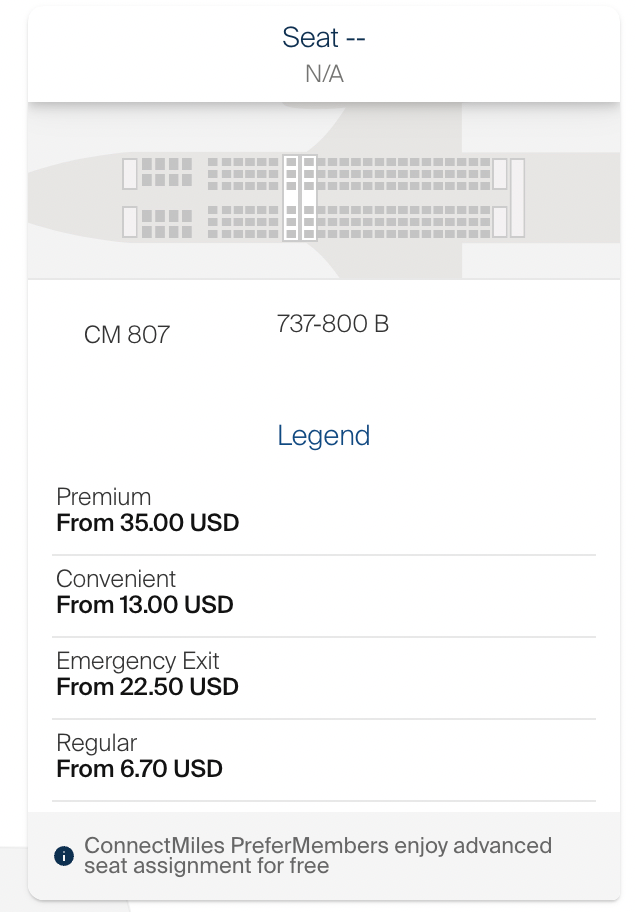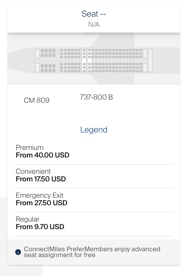 Seat selection fees for an economy basic round-trip flight vary from $6.70 for a regular seat to $40 for a premium seat closer to the front of the aircraft. At the time of publication, all the seats for flights to Panama City and flights back to New York City were available.