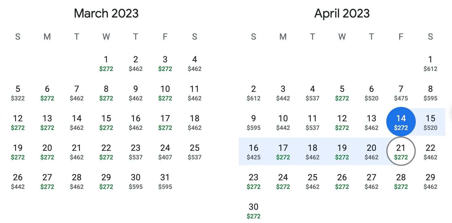 However, we found that flights departing from JFK from March through April had the most available discounted dates.