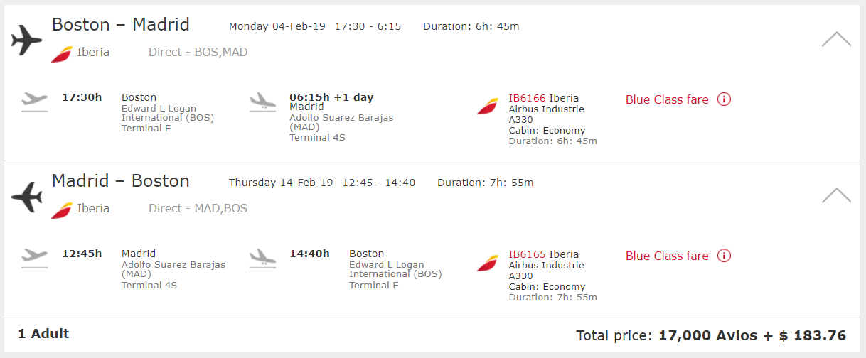 This promotion is only for Iberia-operated award flights between the selected cities with travel dates from Jan. 14 through March 31, 2019. However, you can book cheap American award flights to Spain — without the steep taxes and fees — through American Airlines Economy Web Specials program.