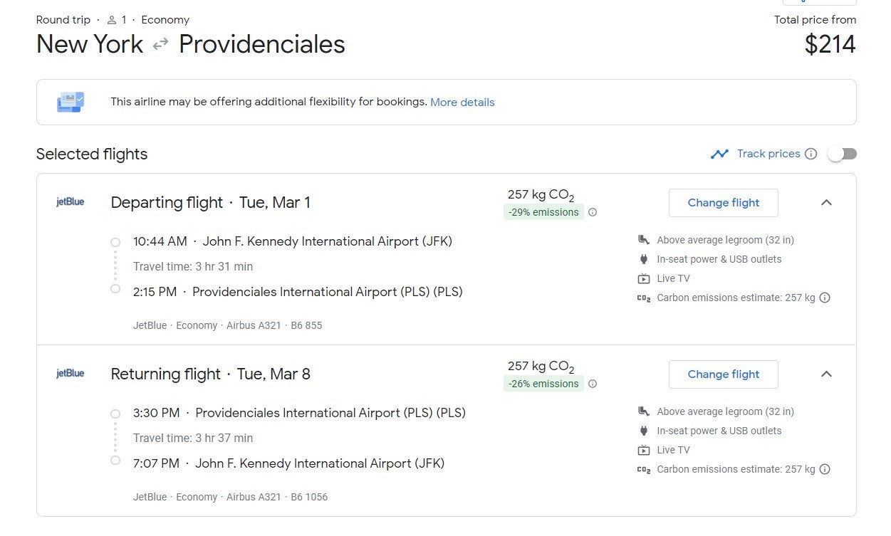 Some of the lowest nonstop round-trip fares we found to Providenciales, Turks and Caicos (PLS) were from Miami (MIA) at $208 and New York (JFK) for $214 for basic economy seats.