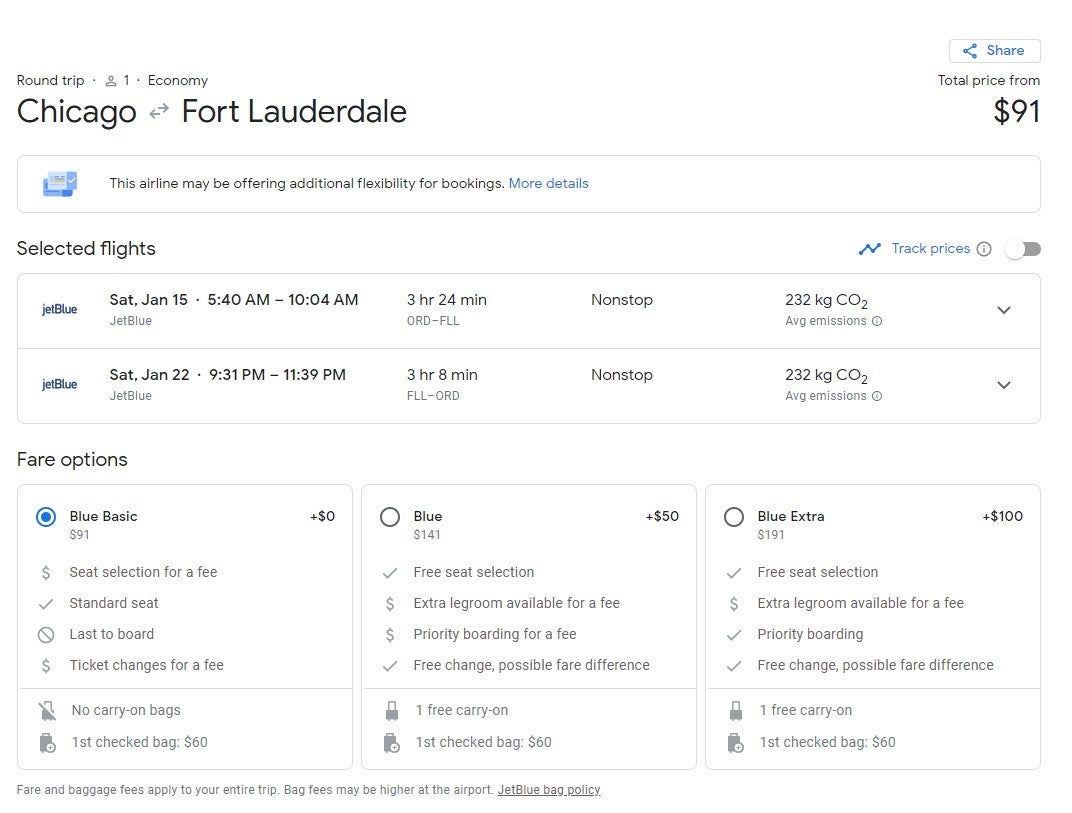 Get away from frigid Chicago (ORD) with this $91 fare to Fort Lauderdale (FLL) on JetBlue in mid-January. This is a Blue Basic ticket, which means you will pay extra for seat selection and even carry-on luggage.