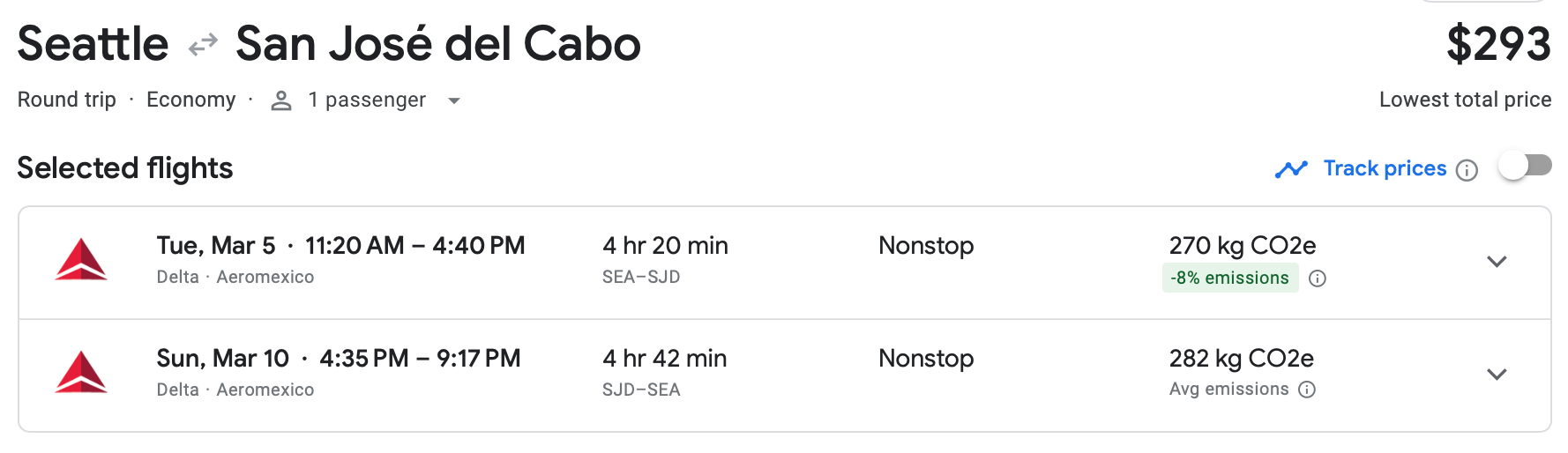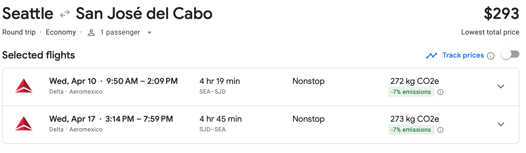 These prices from Seattle to Mexico are not common, so this is a sale to really take advantage of. We also found the same $293 price for nonstop flights out of Seattle to San Jose del Cabo in April.