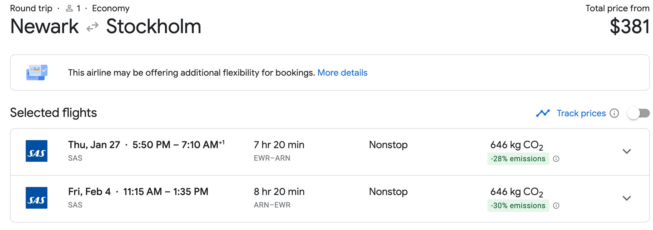 Newark (EWR) to Stockholm (ARN) for $381 round-trip