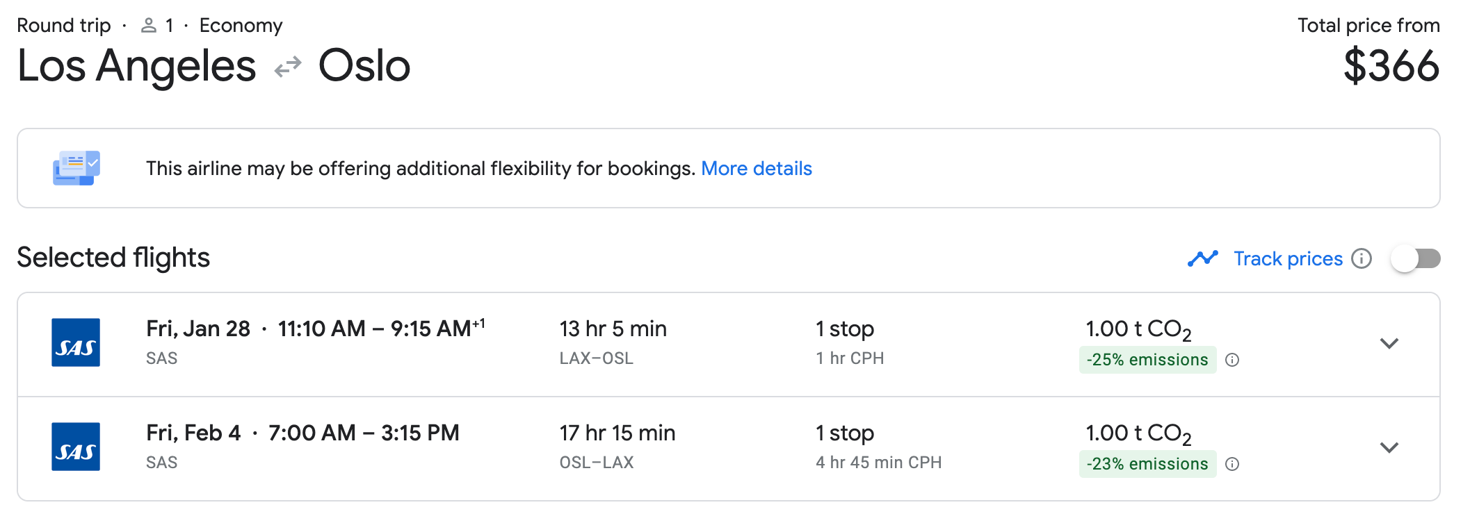 Los Angeles (LAX) to Oslo (OSL) for $366 round-trip
