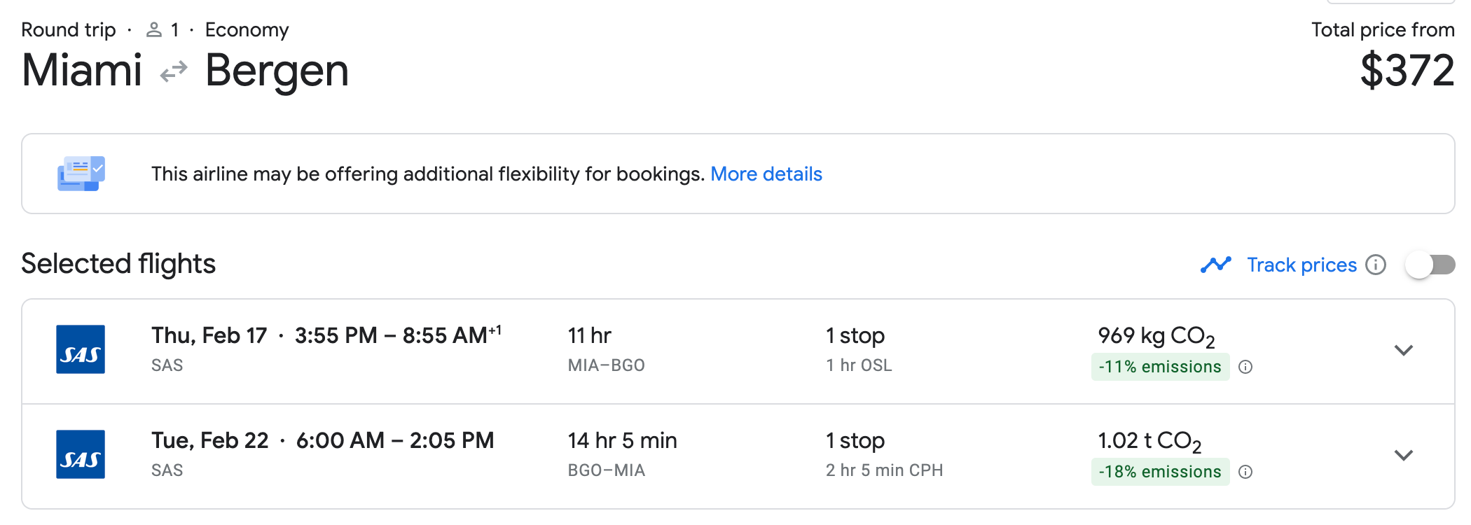 Miami (MIA) to Bergen (BGO) for $372 round-trip