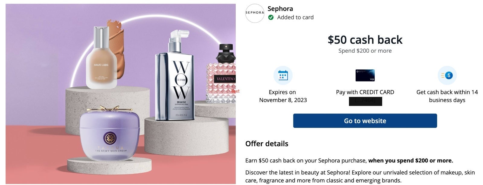 For the beauty gurus who spend way too much money at Sephora (you know who you are), the Chase Sapphire Reserve card is currently advertising $50 cash back when you spend $200 or more.