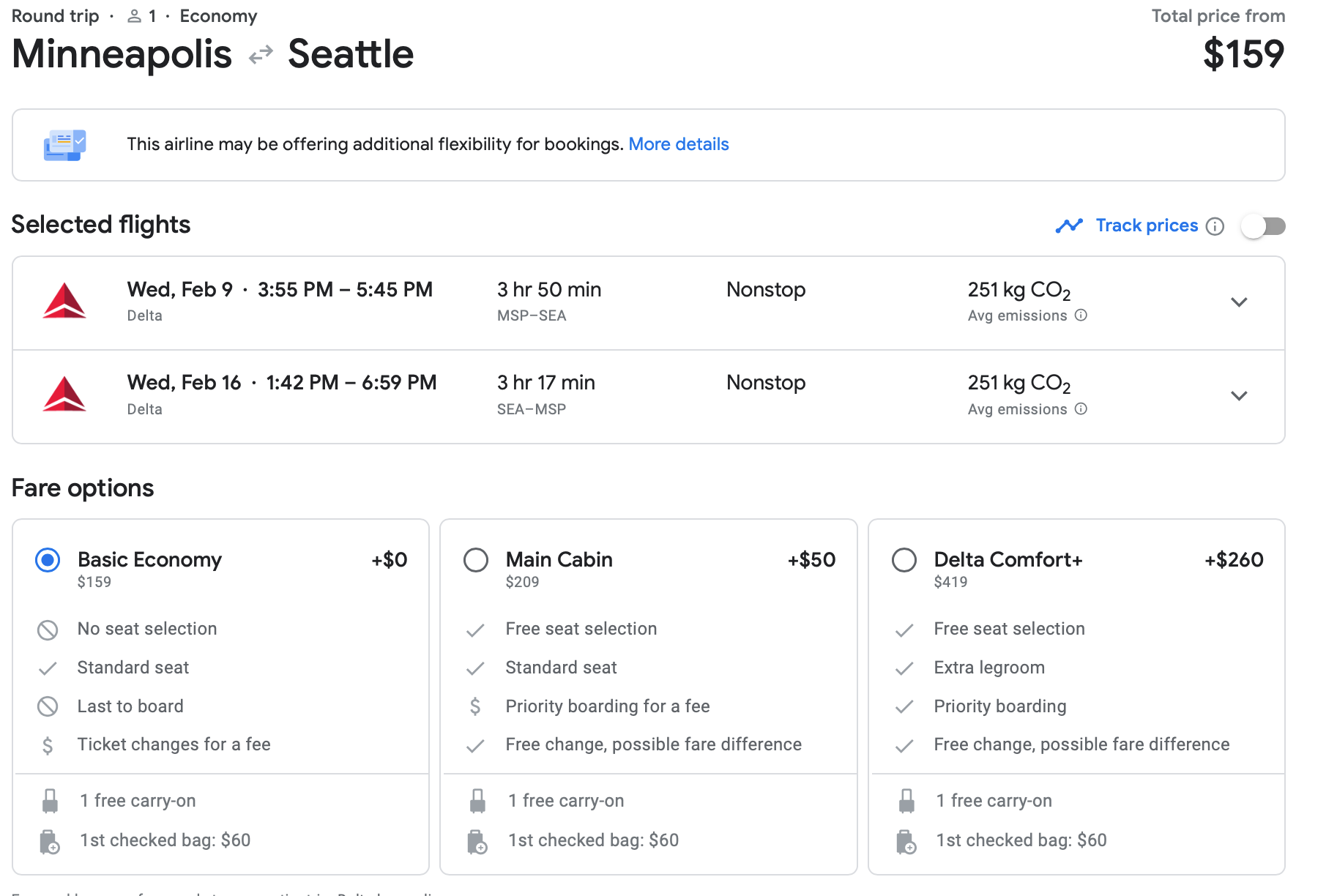 February is a month with some of the best fares in this deal. For example, Minneapolis (MSP) to Seattle nonstop can be had for just $159.