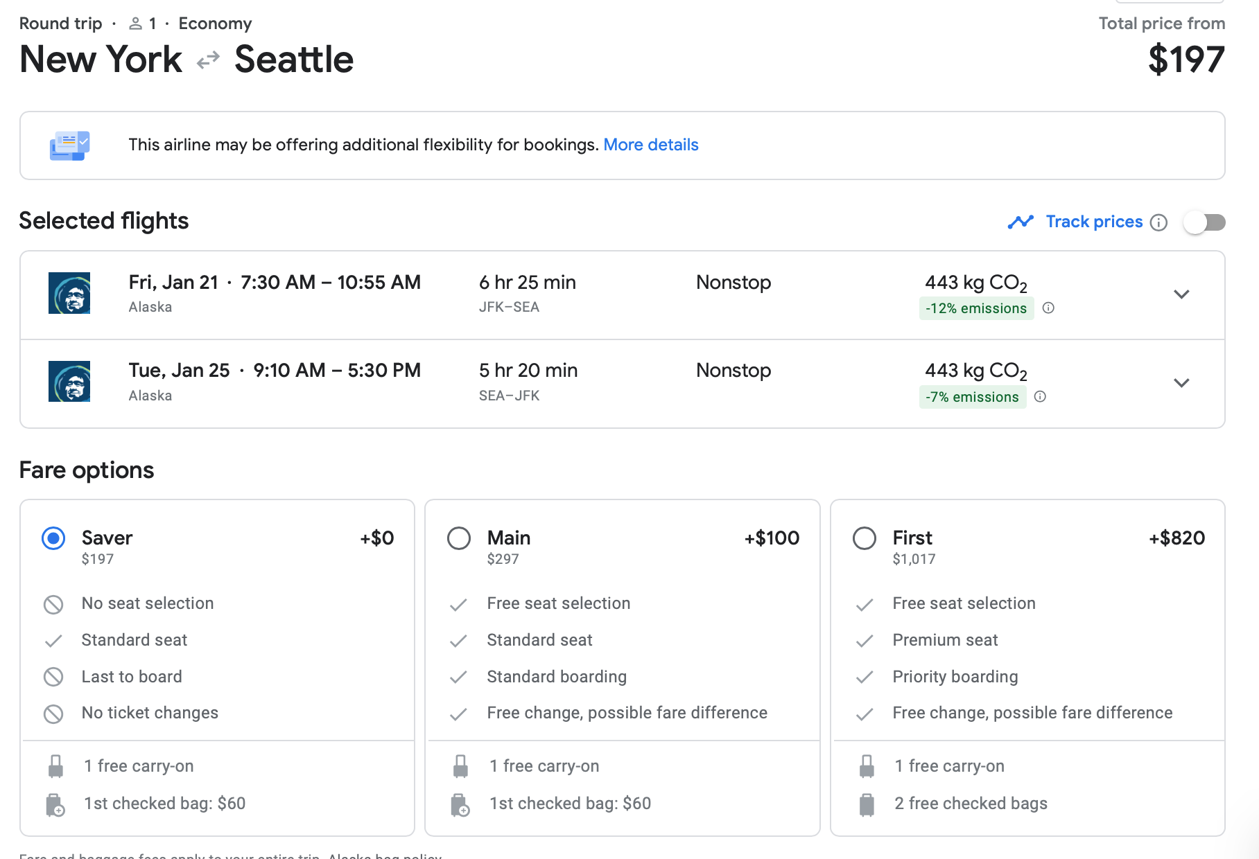 We also saw similar prices for Alaska Air flights from Newark Liberty Airport (EWR) in January. So if that airport is more convenient for you, make sure to search those routes, too.