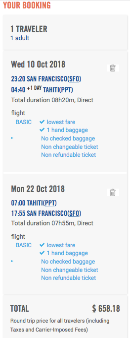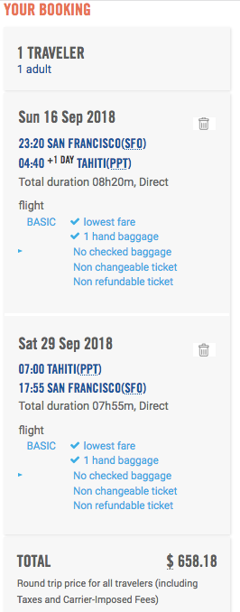 San Francisco (SFO) to Tahiti (PPT) for $659 nonstop round-trip in September on French Bee in basic economy: