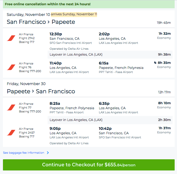 San Francisco (SFO) to Tahiti (PPT) for $656 round-trip in November on Air France/Delta: