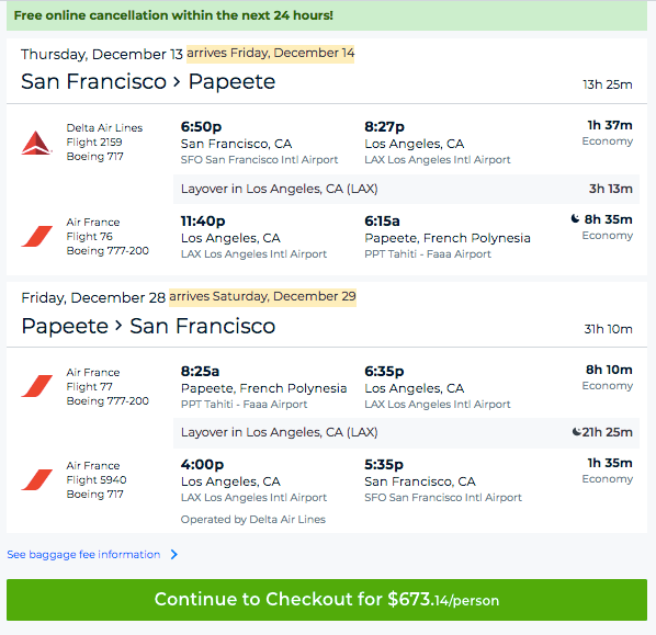 San Francisco (SFO) to Tahiti (PPT) for $674 round-trip in December (including Christmas!) on Air France/Delta: