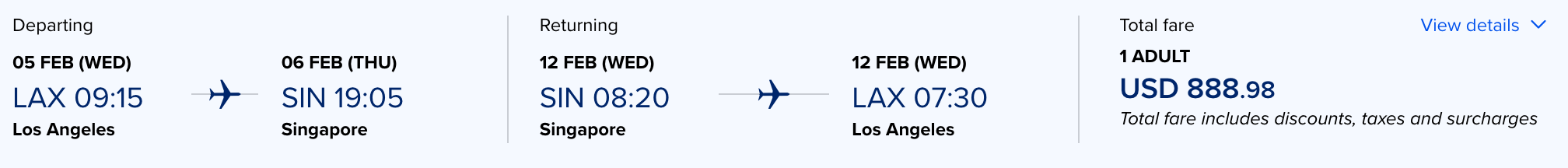 Los Angeles (LAX) to Singapore (SIN) for $889 round-trip nonstop in premium economy: