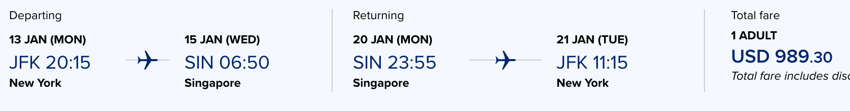 New York (JFK) to Singapore for $990 round-trip in premium economy: