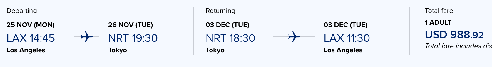 Los Angeles (LAX) to Tokyo (NRT) $989 round-trip nonstop in premium economy: