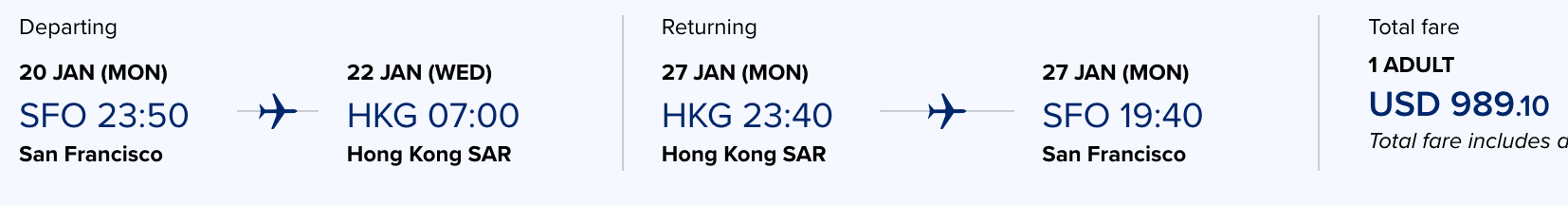 San Francisco (SFO) to Hong Kong (HKG) for $990 round-trip nonstop in premium economy: