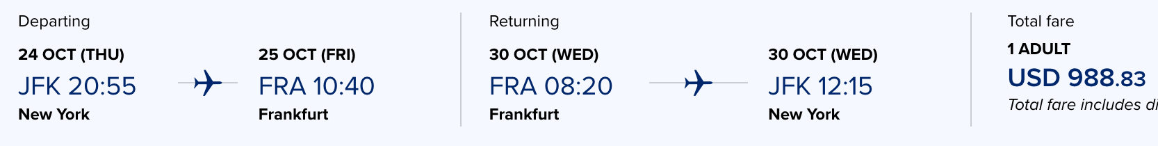 New York (JFK) to Frankfurt (FRA) for $989 round-trip nonstop in premium economy: