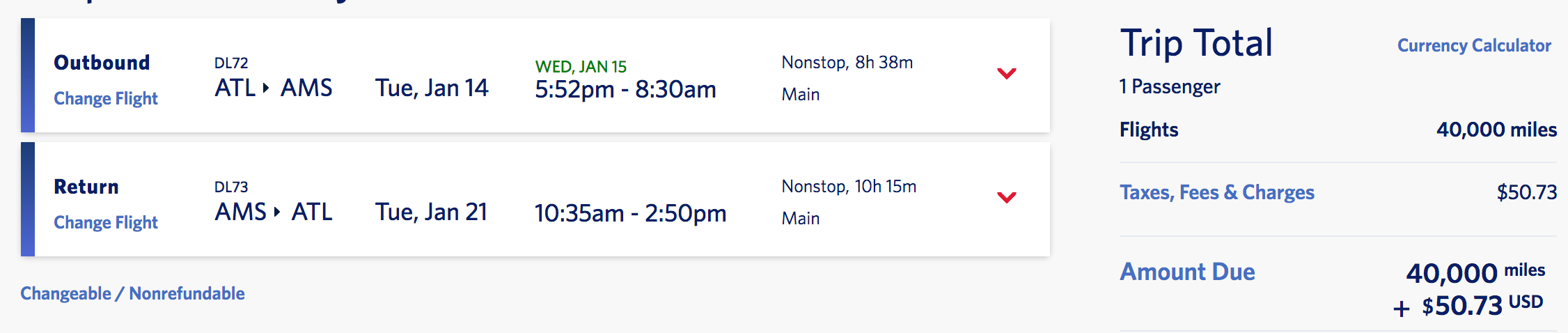 Atlanta (ATL) to Amsterdam (AMS) for 40,000 miles + $51 round-trip nonstop: