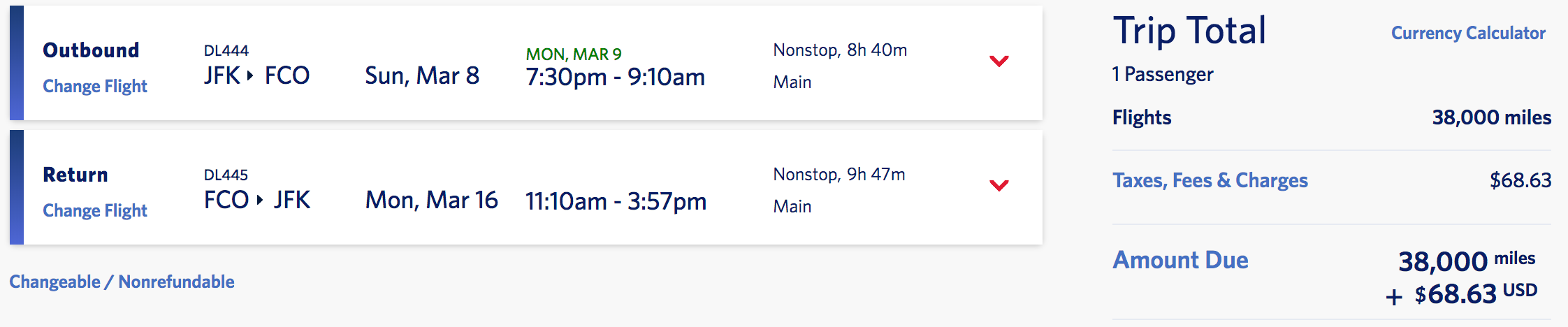 New York (JFK) to Rome (FCO) for 38,000 miles +$69 round-trip nonstop: