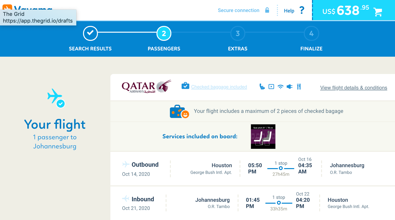 Houston (IAH) to Johannesburg (JNB) for $639 round-trip on Qatar via Vayama (9-hour layover in Qatar on the return):