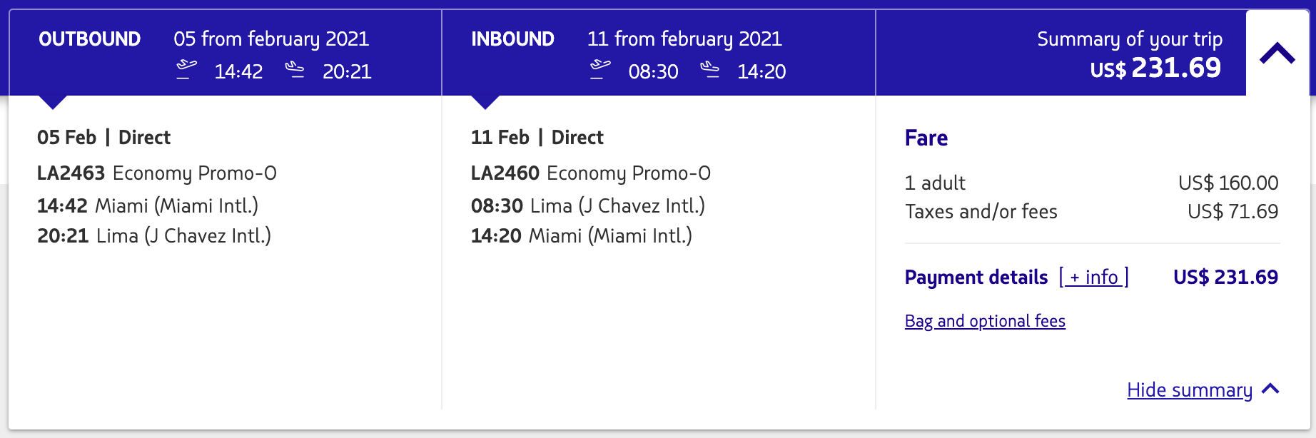 Miami (MIA) to Lima (LIM) for $232 round-trip nonstop on LATAM: