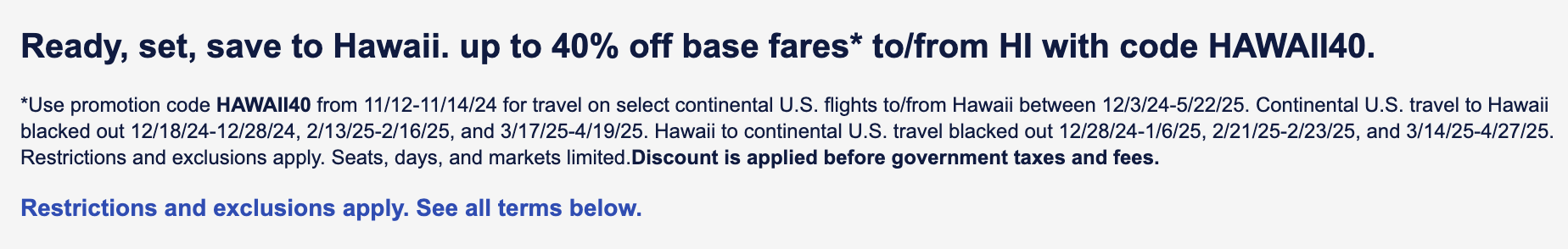 Use the code "HAWAII40" through Thursday to book travel through May 2025.