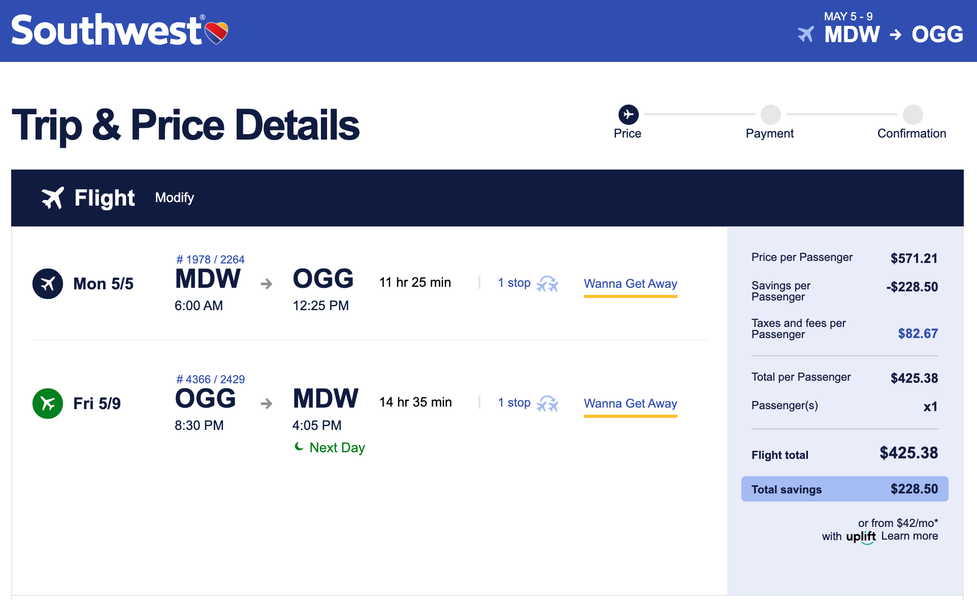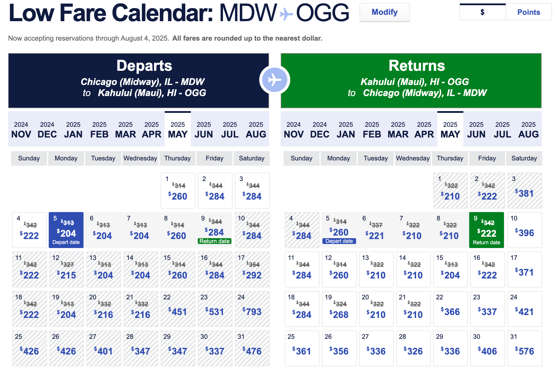 Based on a test search conducted for this story, you could book a round-trip ticket from Chicago's Midway International Airport (MDW) to Kahului Airport (OGG) in early May for $425.