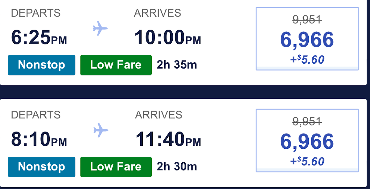 For instance, here's a flight from Denver International Airport (DEN) to Nashville International Airport (BNA) for just over 6,900 Rapid Rewards points — down nearly 3,000 points from the usual cost. That's a great option for a fall getaway to Music City.