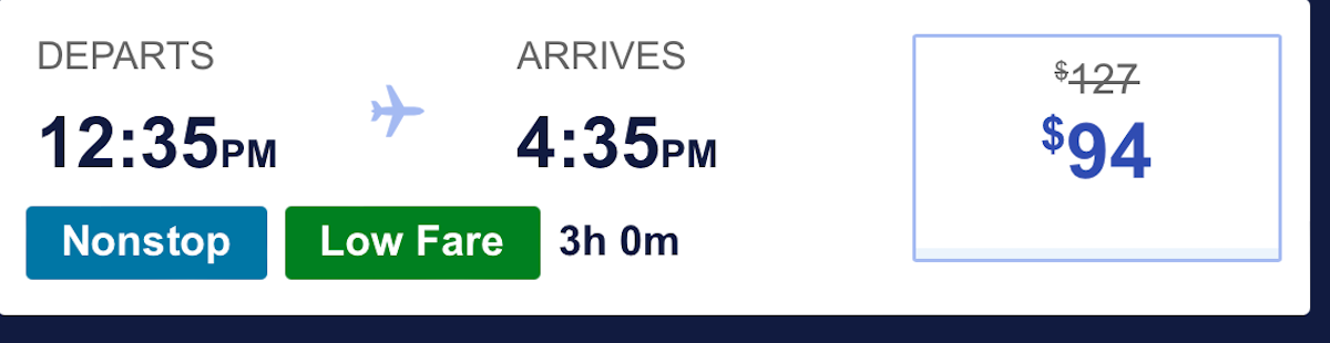 For instance, here's a one-way flight on a Saturday in August from Chicago's Midway International Airport (MDW) to Fort Lauderdale-Hollywood International Airport (FLL) for $94, discounted from $127 (a 25% savings).