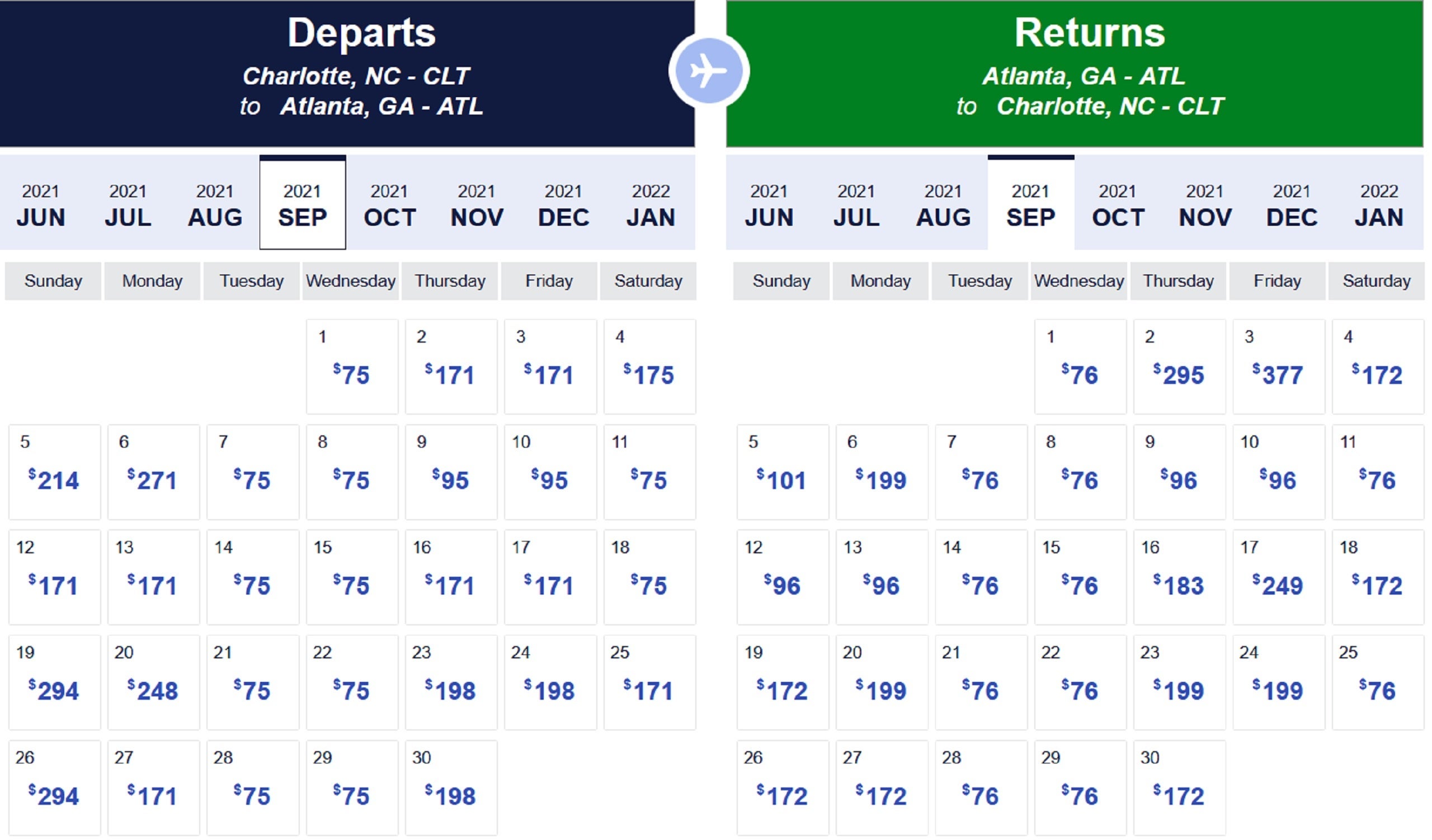 - As low as $75 one-way nonstop between Charlotte and Atlanta.