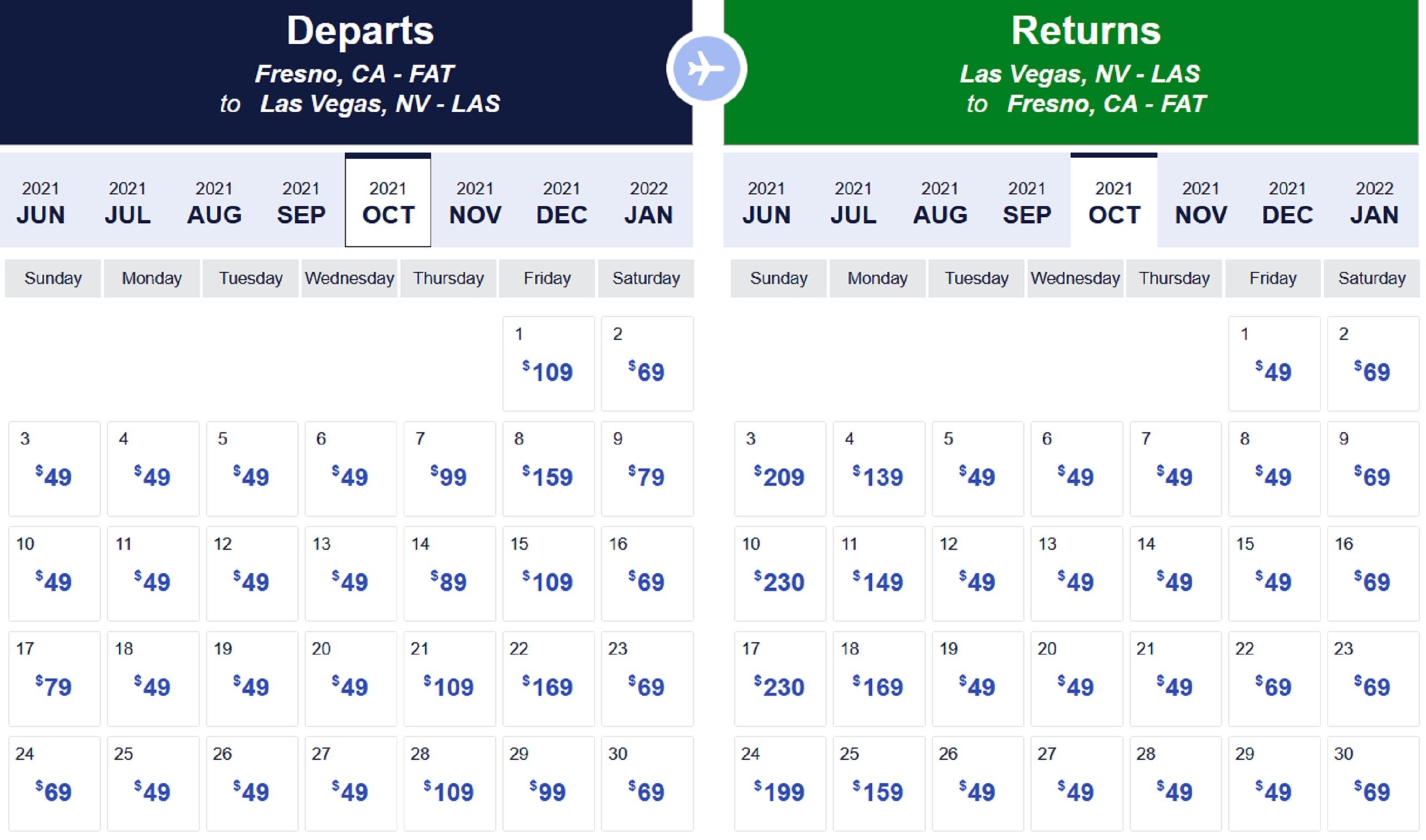 - As low as $49 one-way nonstop between Fresno, California, and Las Vegas.