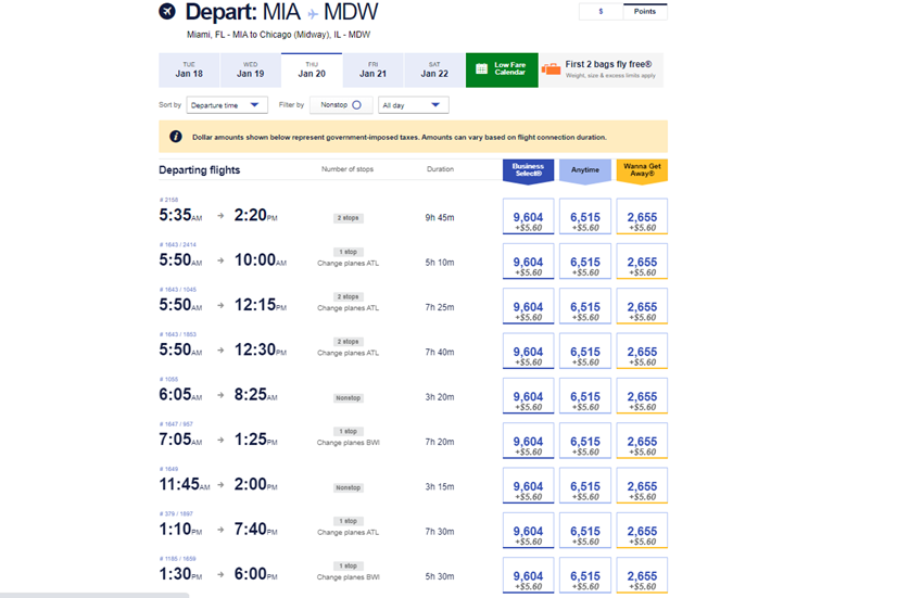 Taxes and fees on these miles fares will come to $5.60, one-way. While that's not all that much, it still pays to use a card that earns points on airfare purchases, such as The Platinum Card® from American Express (5x on airfare booked directly with the airline or through American Express Travel, on up to $500,000 on these purchases per calendar year), Citi Prestige® Card (5x on airfare), Citi Premier® Card (see rates and fees), Chase Sapphire Reserve (3x on airfare), American Express® Gold Card (3x on airfare when booked directly with the airline or via Amex Travel) or the Chase Sapphire Preferred Card (2x on travel). Or, use your Southwest Rapid Rewards Premier Credit Card for 3x on Southwest Airlines purchases. Check out this post for more on maximizing airfare purchases.
