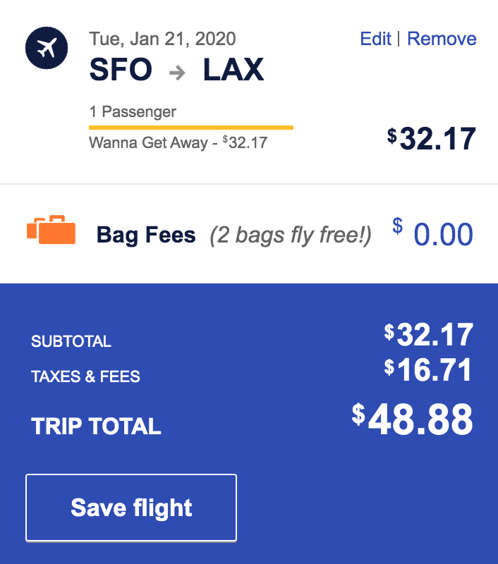 San Francisco (SFO) to Los Angeles (LAX) for $49 one-way nonstop: