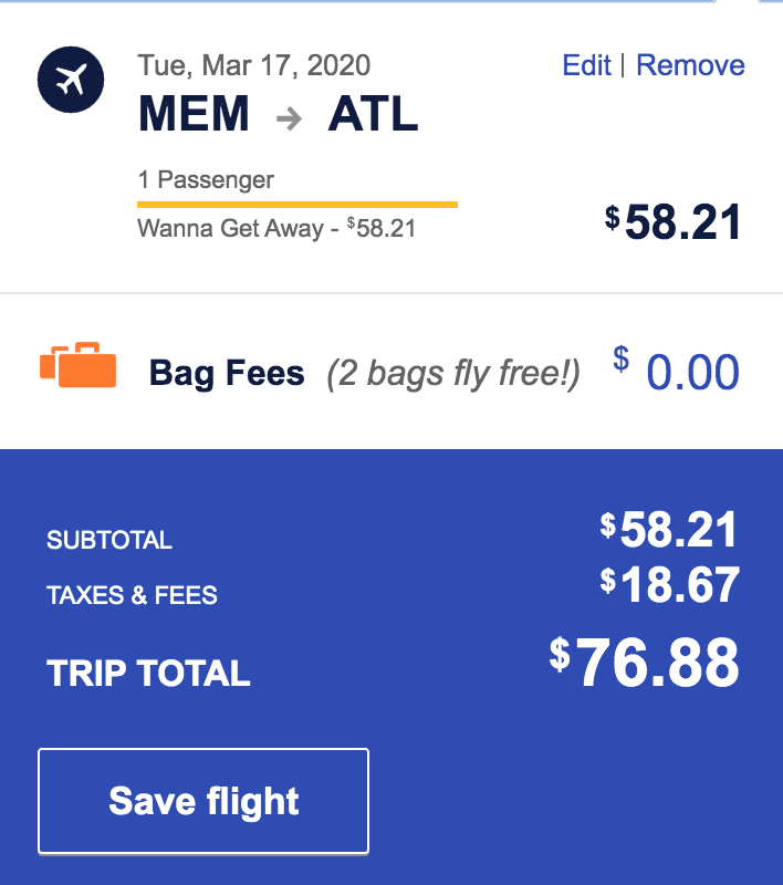 Memphis (MEM) to Atlanta (ATL) for $77 one-way nonstop:
