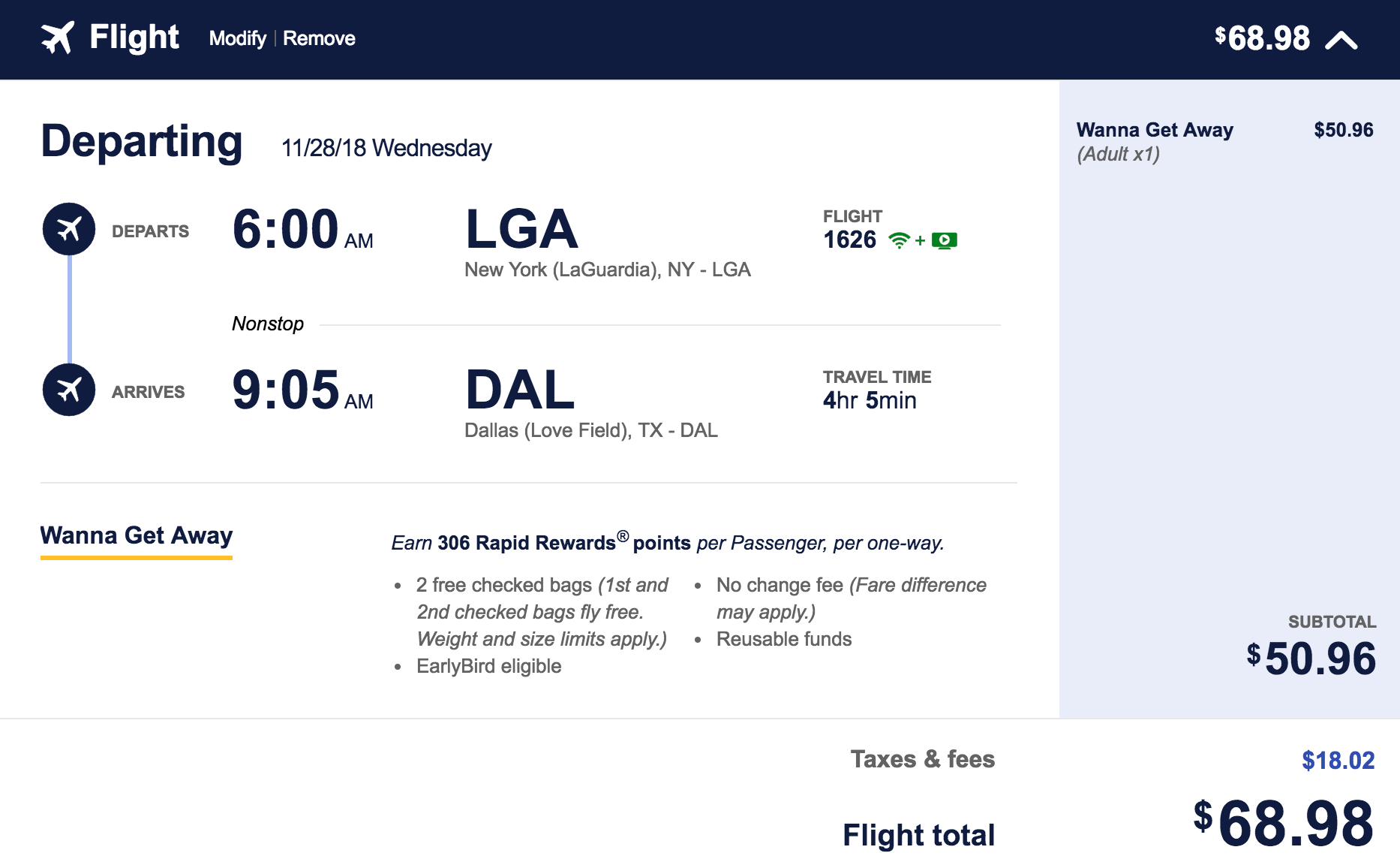 New York (LGA) to Dallas (DAL) for $69 one-way: