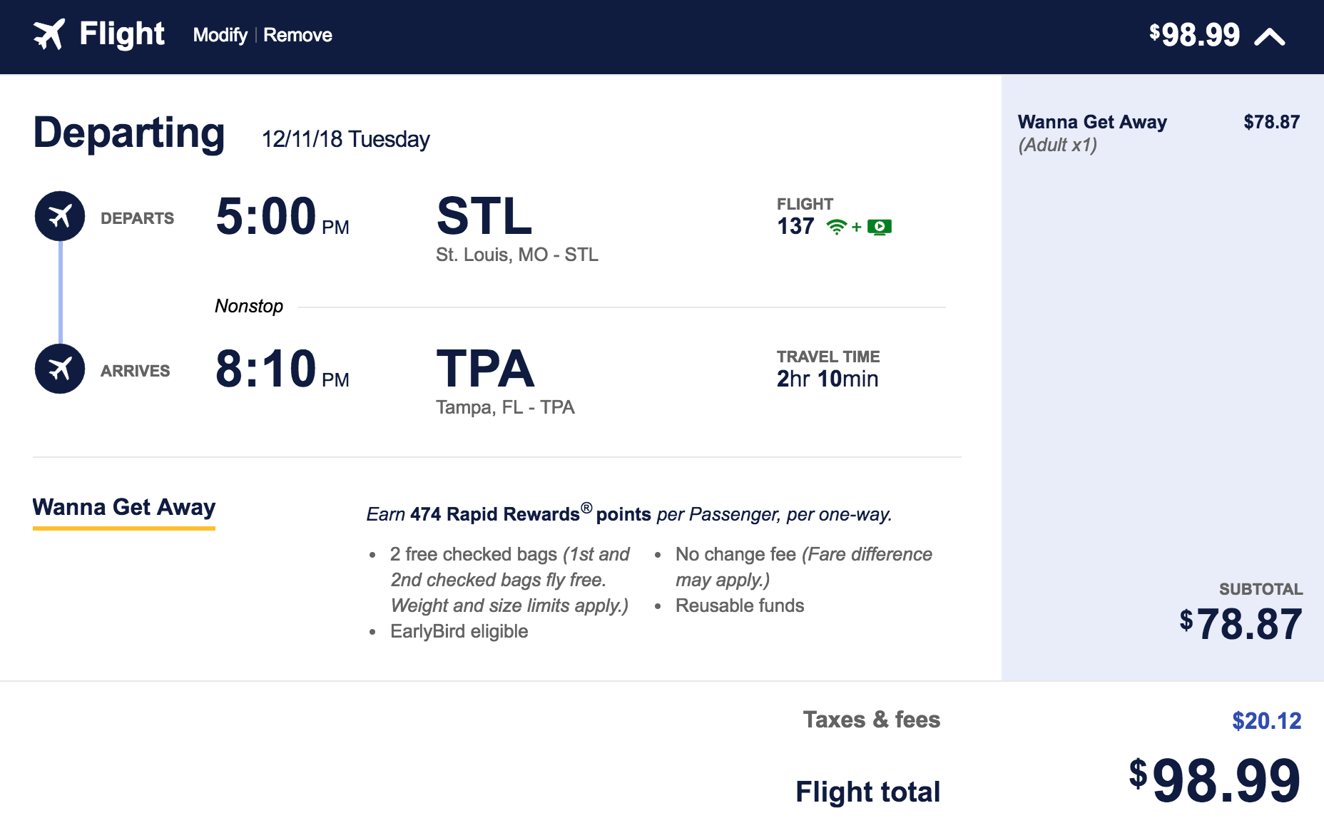 St. Louis (STL) to Tampa (TPA) for $99 one-way: