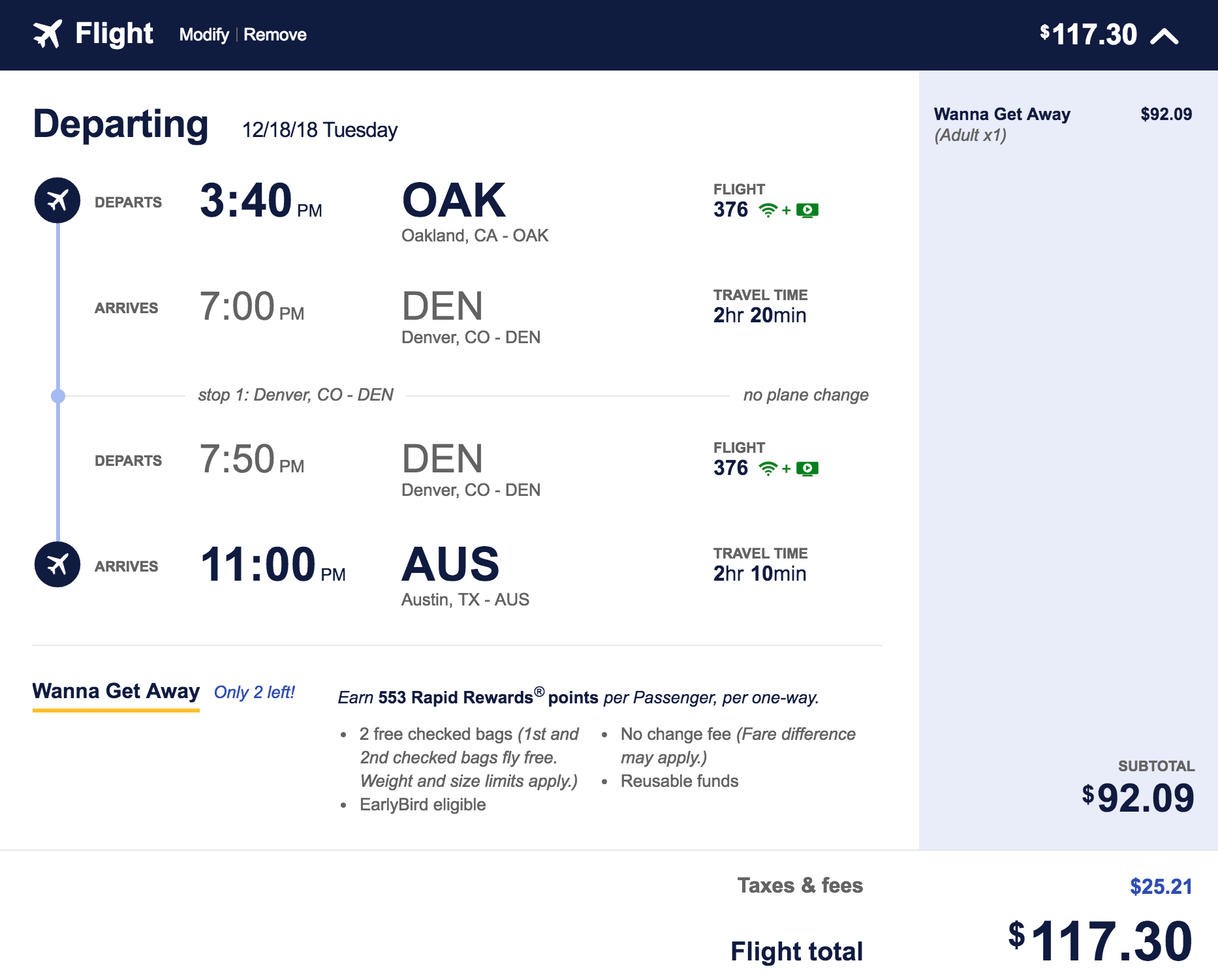 Oakland (OAK) to Austin (AUS) for $117 one-way: