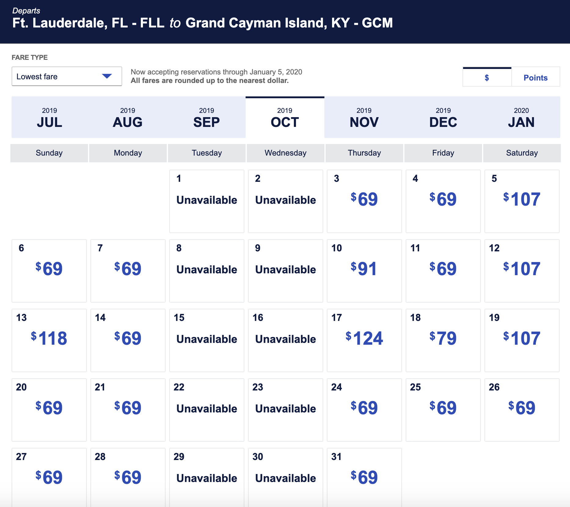 Ft. Lauderdale (FLL) to Grand Cayman Island (GCM) for $69 one-way:
