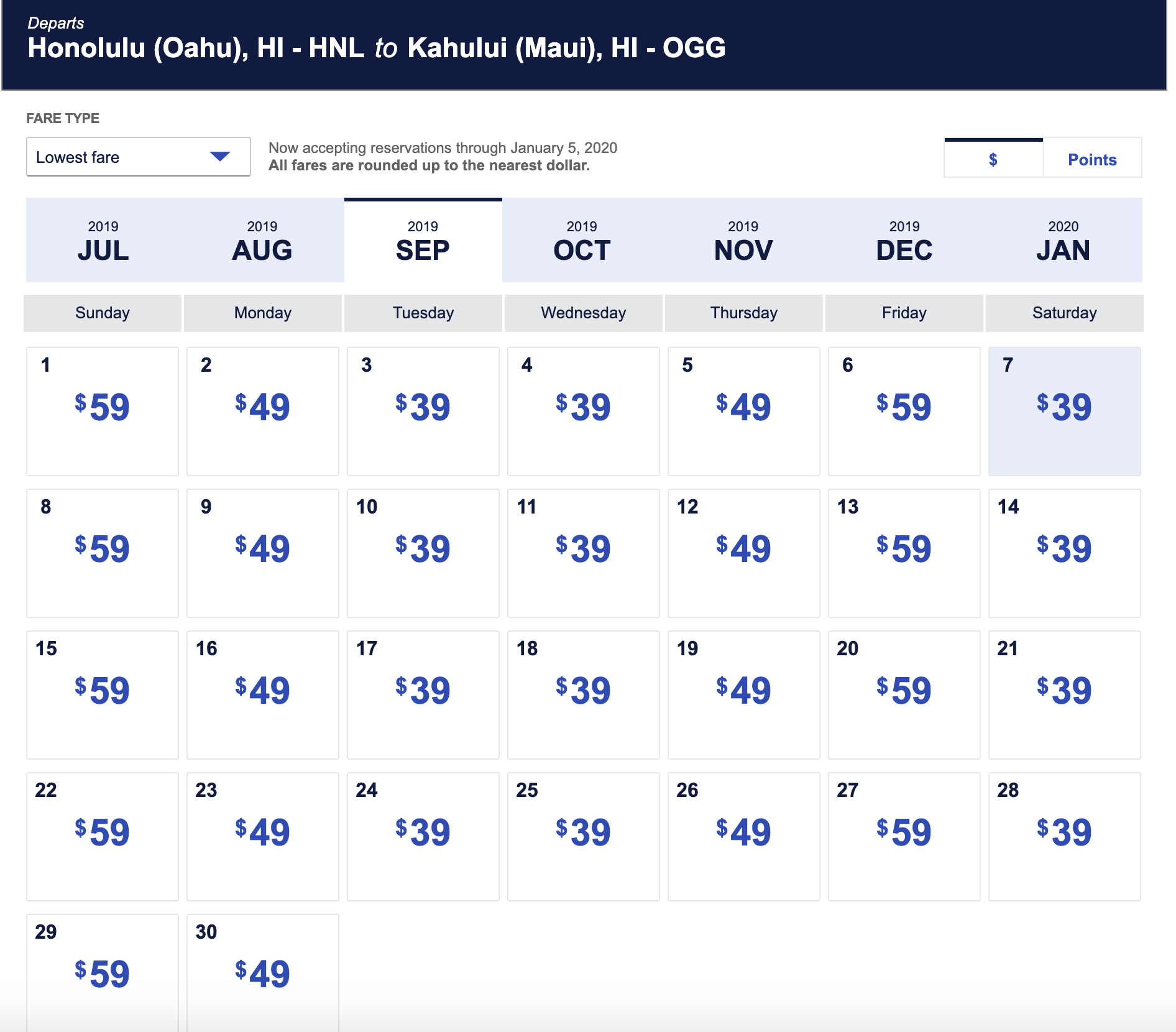 Honolulu (HNL) to Kahului (OGG) for $39 one-way: