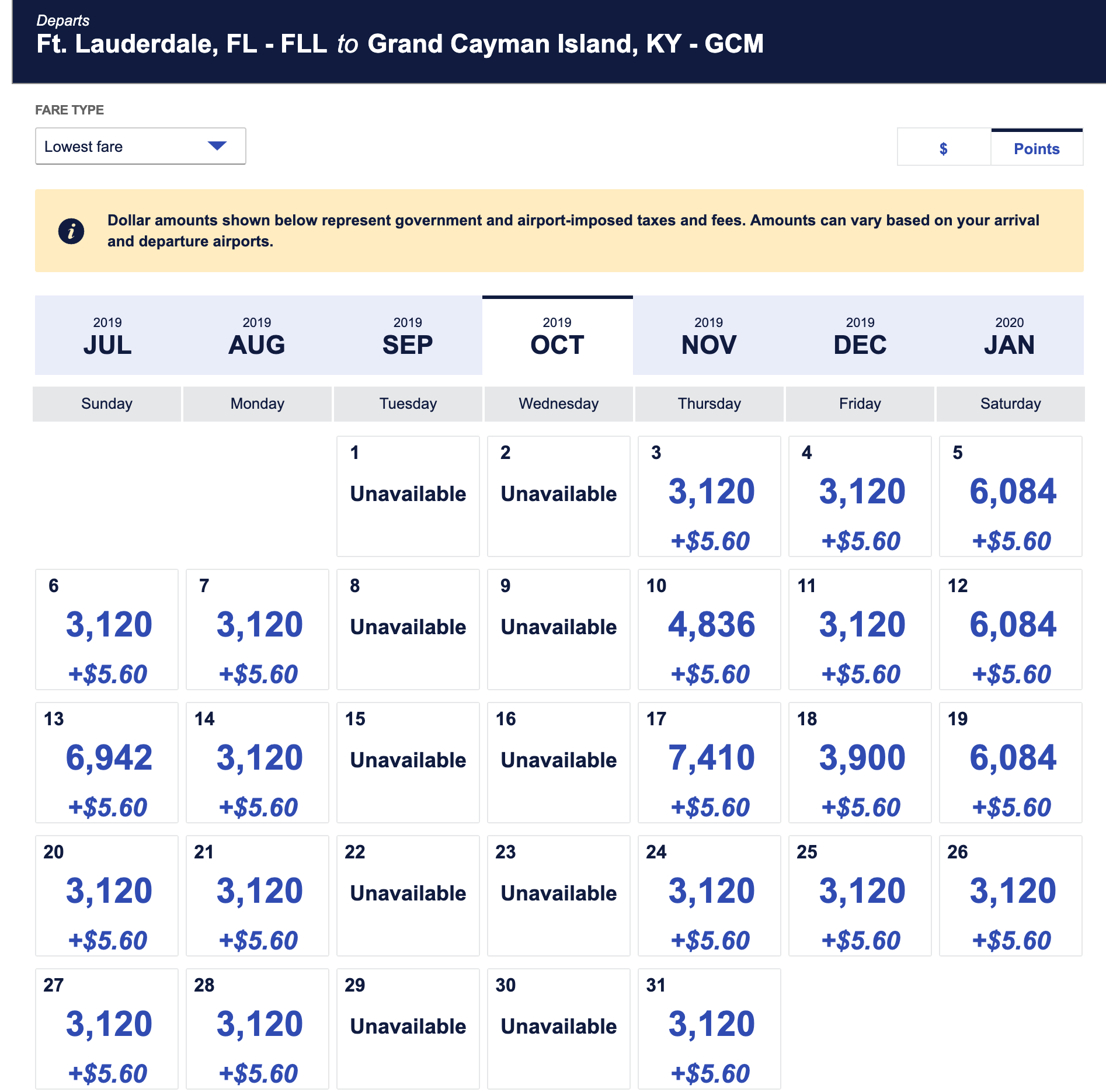 Ft. Lauderdale (FLL) to Grand Cayman Island (GCM) for 3,120 Southwest points + $5.60 one-way: