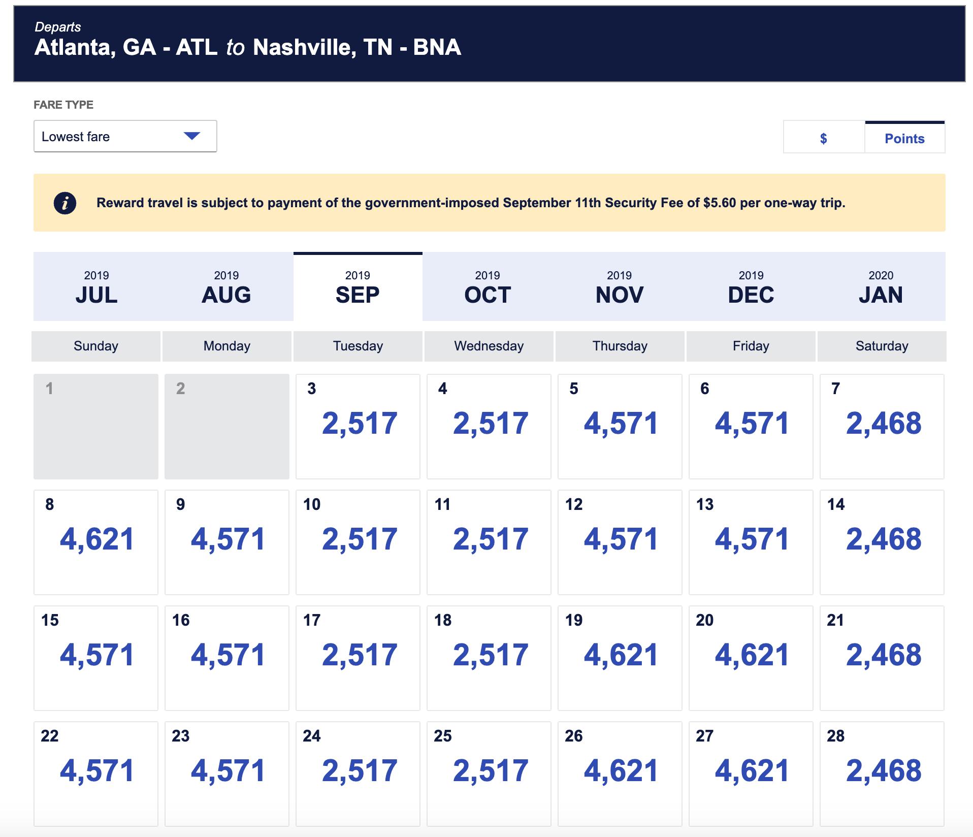Atlanta (ATL) to Nashville (BNA) for 2,517 Southwest Points one-way: