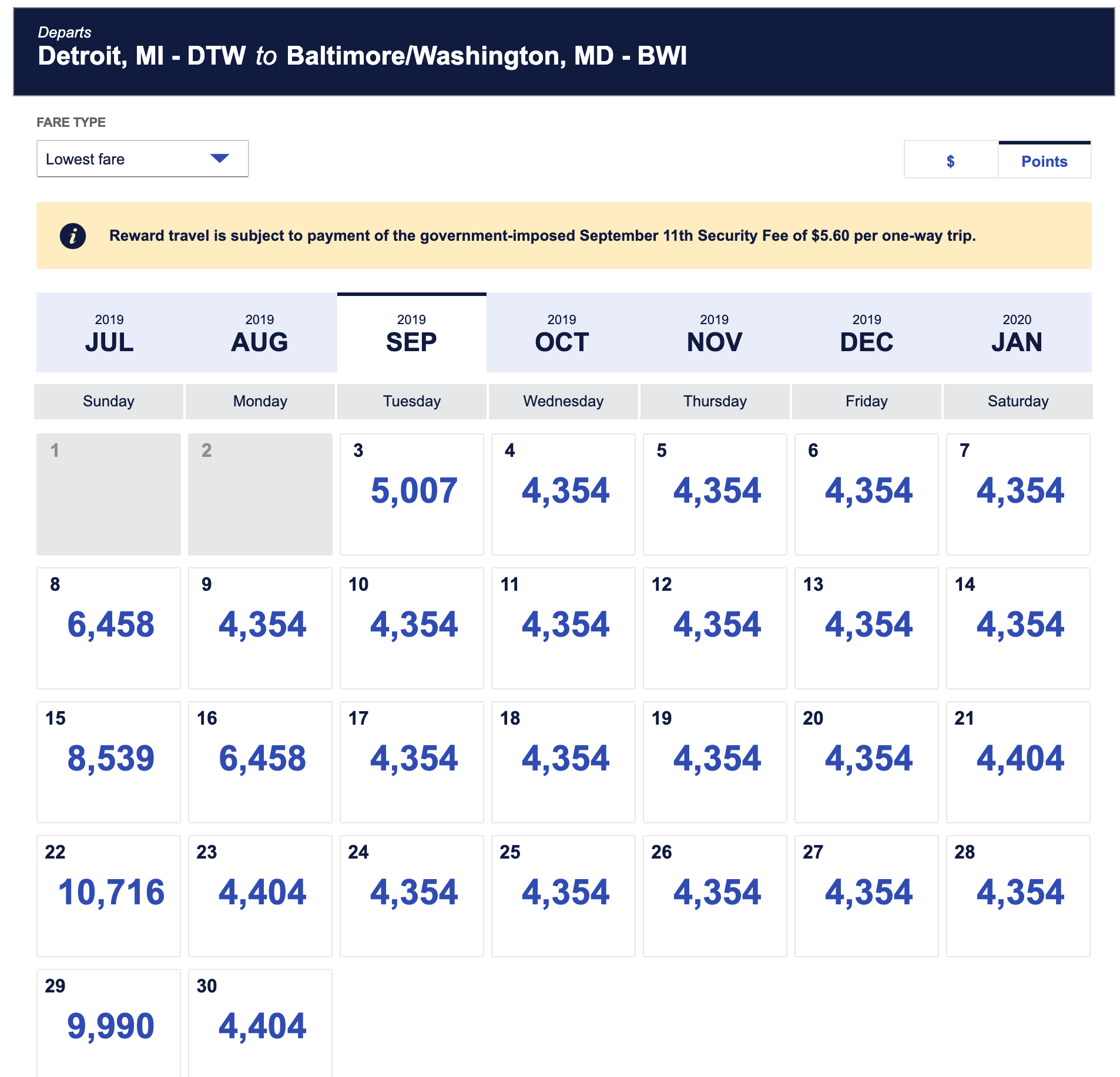 Detroit (DTW) to Baltimore (BWI) for 4,454 Southwest Points + $5.60 one-way: