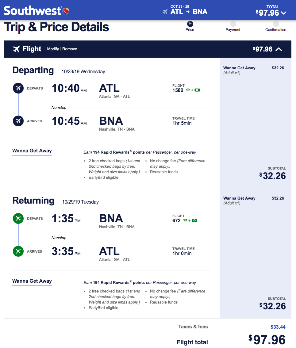 Booking Link: Southwest.com